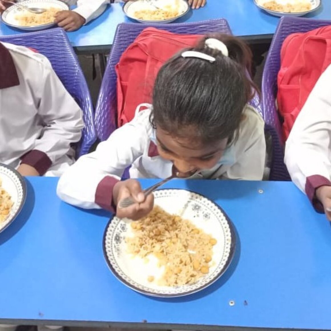 At the Kadlathia site we now have 70 children in the program. Of these, 28 children are attending an English medium school, Rumi Academy. These children are provided with lunch everyday when they come directly to their after- school program. Sana, our driver’s wife prepares and serves the meals. All other children in the program get a healthy snack 3 times a week. Thank you to our donors who are supporting these meals and snacks. The children love to try the different seasonal fruits and get especially excited the days they get cookies!