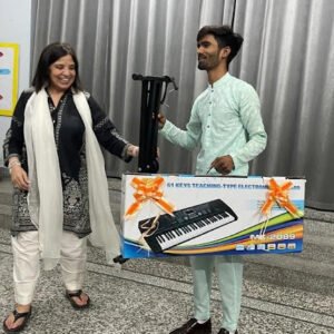 Daud, our first student to pass grade 10 and join college, finally received the promised keyboard as a gift. He is now giving back to the program at CJD by maintaining the computers and teaching other students various computer skills.